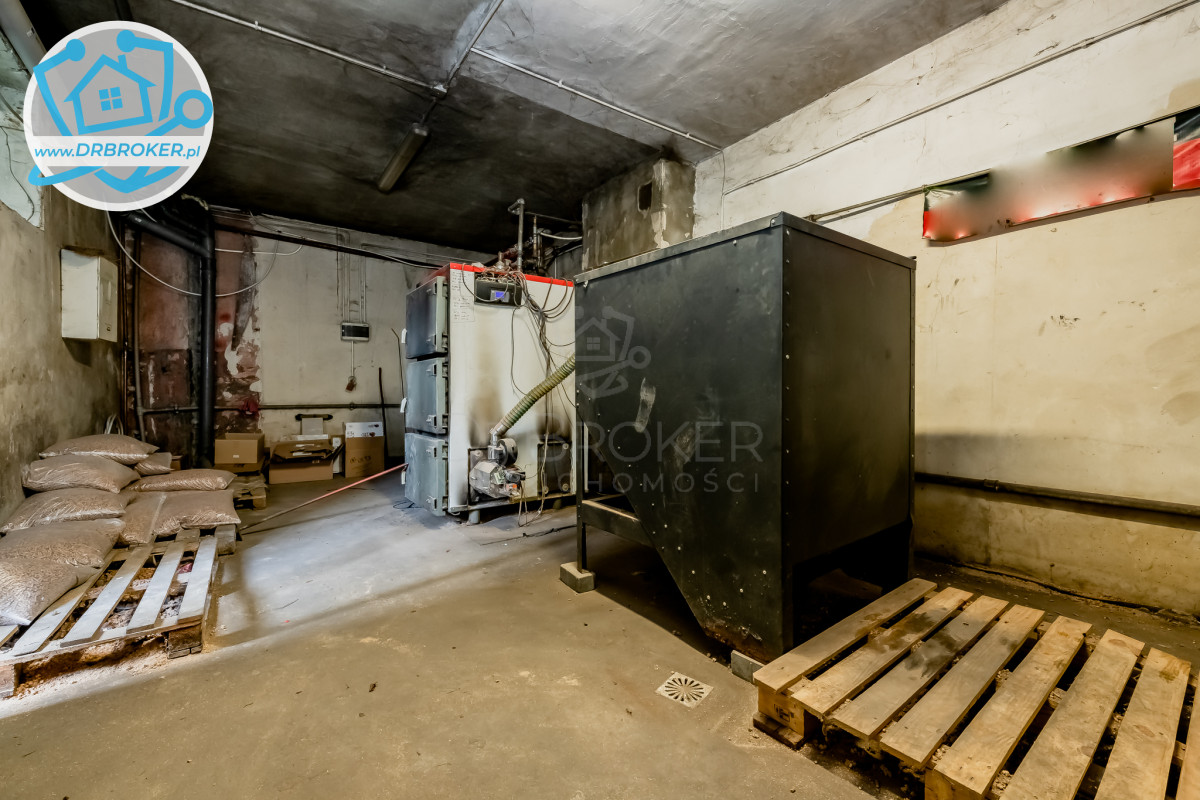 Obiekt składa się z 3 kondygnacji naziemnych i 1 podziemnej. Jest w świetnej kondycji, zadbany, po termomodernizacji i wymianie okien, przyjazny osobom niepełnosprawnym. Usytuowany na działce o pow. 1200 m2, posiada stanowiska postojowe i rampę załadunkową. Jest monitorowany, częściowo klimatyzowany, ogrzewany pelletem.