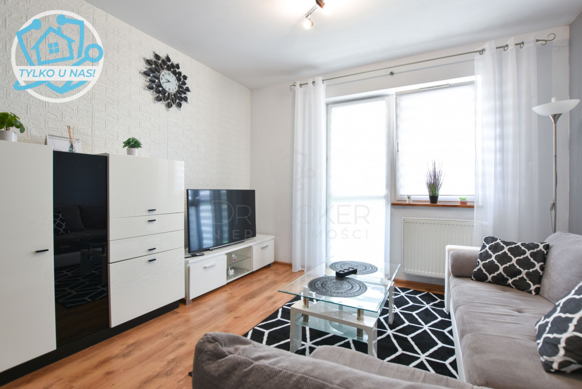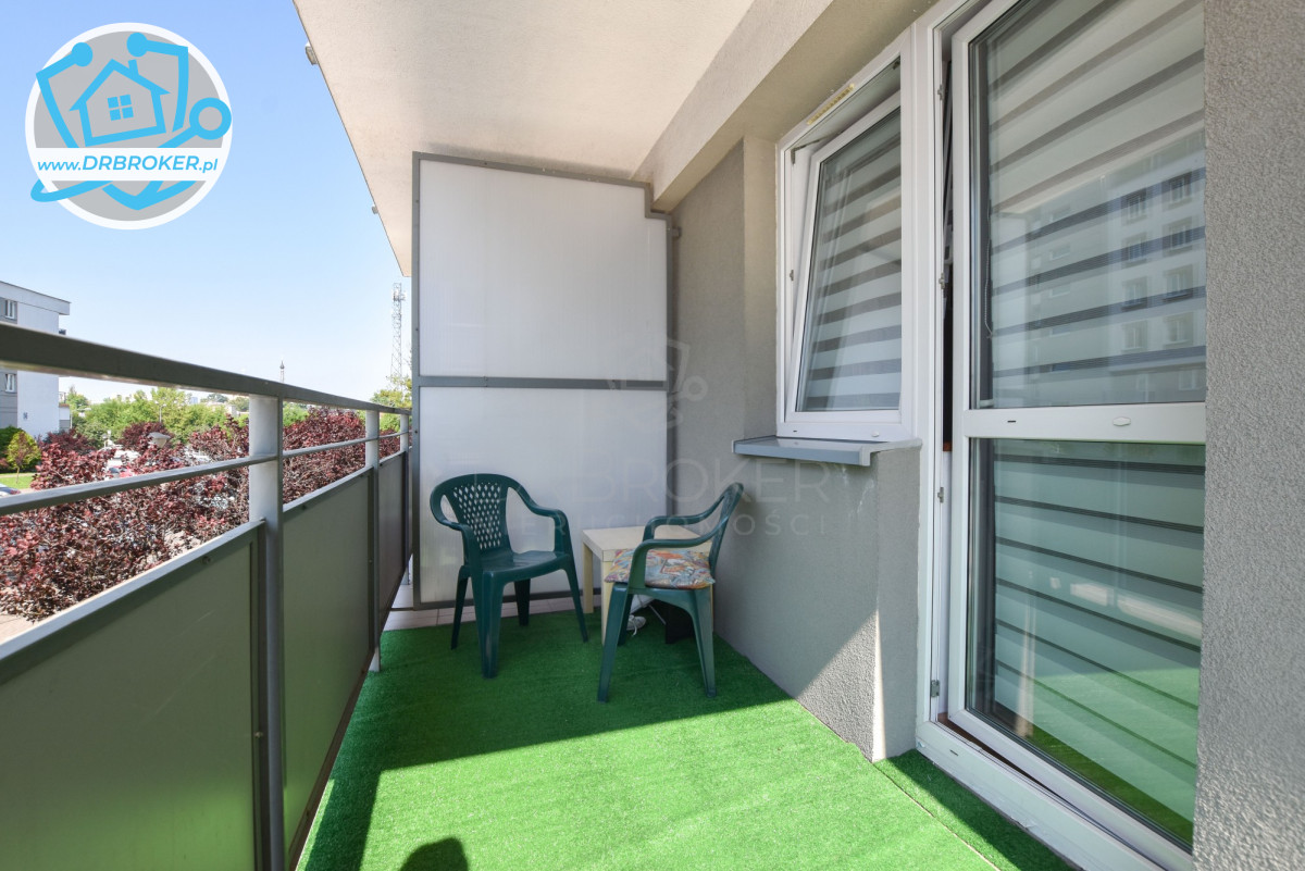 Lokal mieści się na parterze bloku z 2008 roku. Składa się z pokoju dziennego z aneksem kuchennym, sypialni, łazienki (z WC) i przedpokoju. Przynależy do niego balkon i piwnica. Jest gotowy do wejścia, wyposażony w niezbędne meble i sprzęt AGD. Okolica posiada niezbędną infrastrukturę.