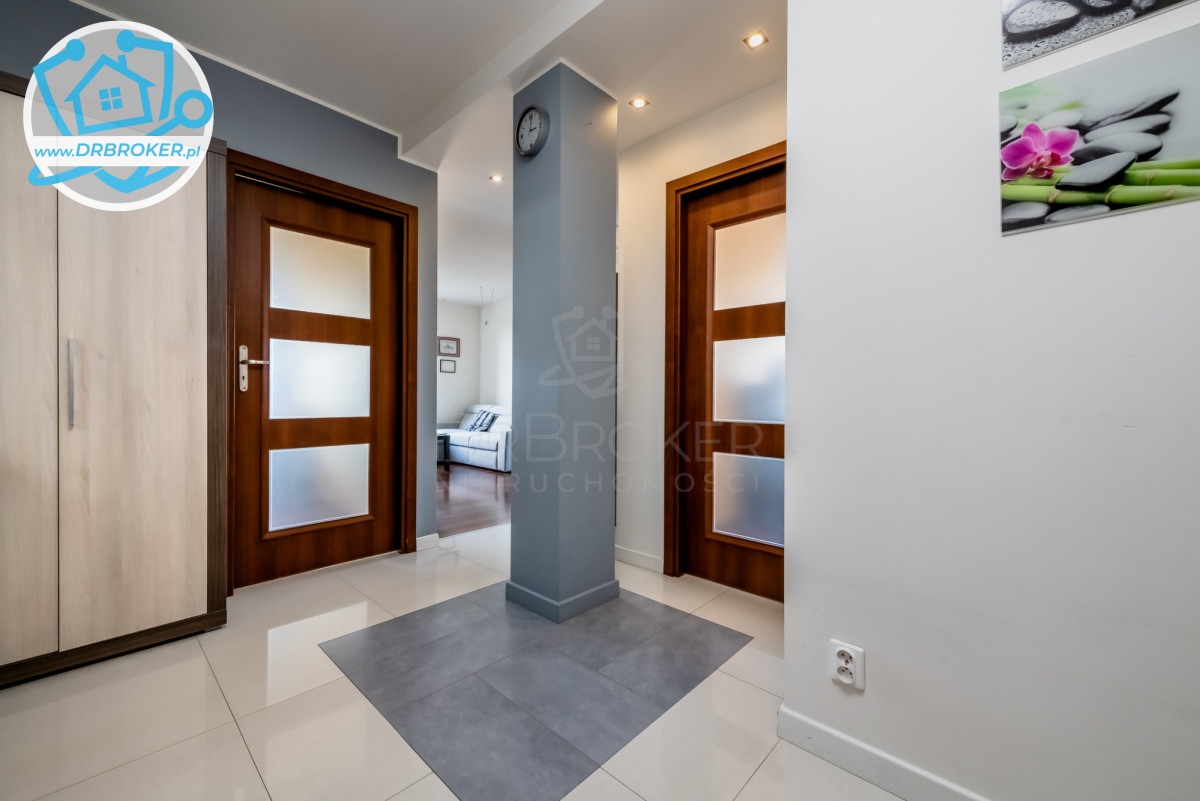 Mieszkanie składa się z: dużego pokoju dziennego z wyodrębnionym aneksem kuchennym, dwóch sypialni, łazieneki oraz przedpokoju. Do mieszkania przynależy również duży balkon.