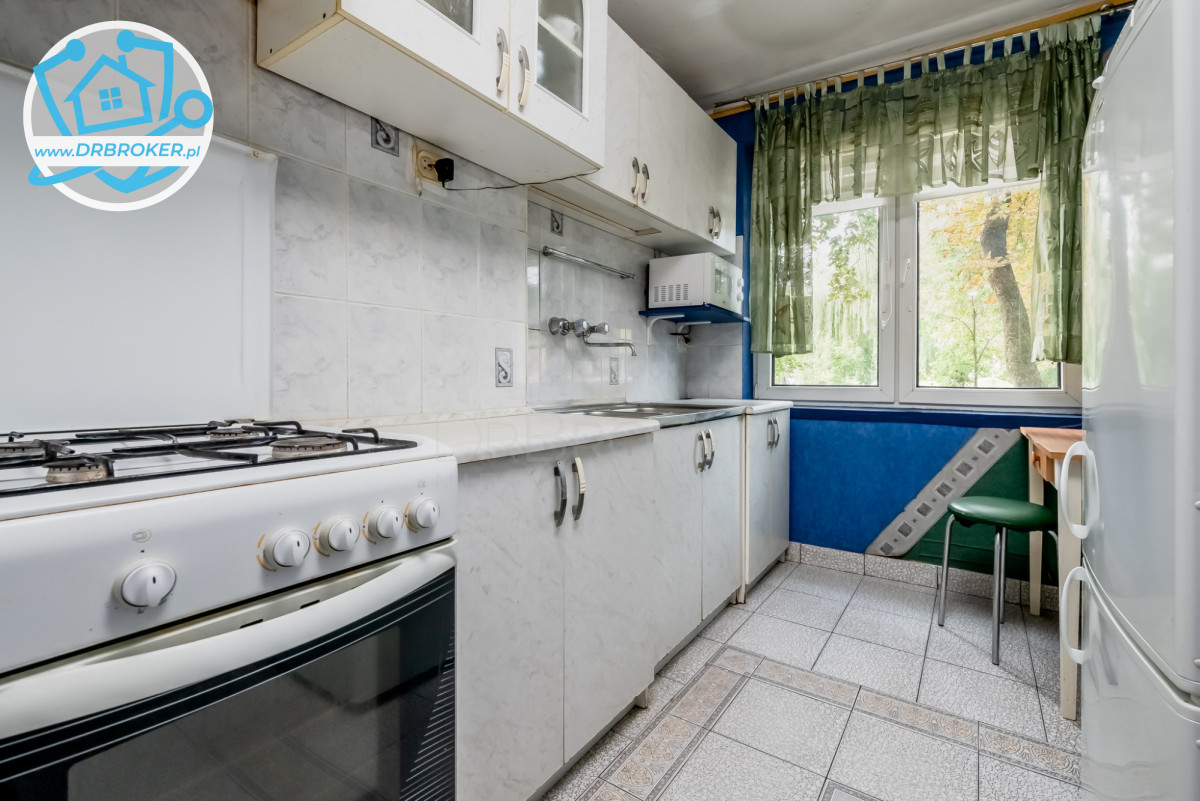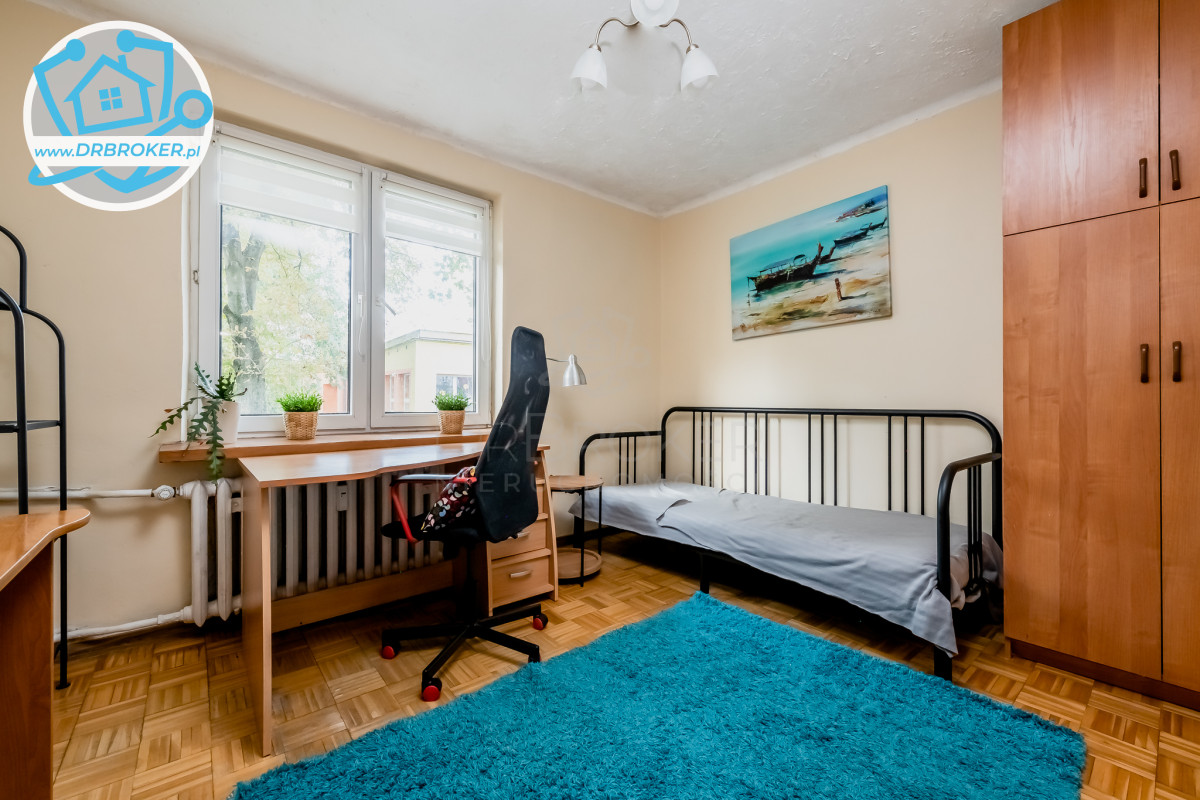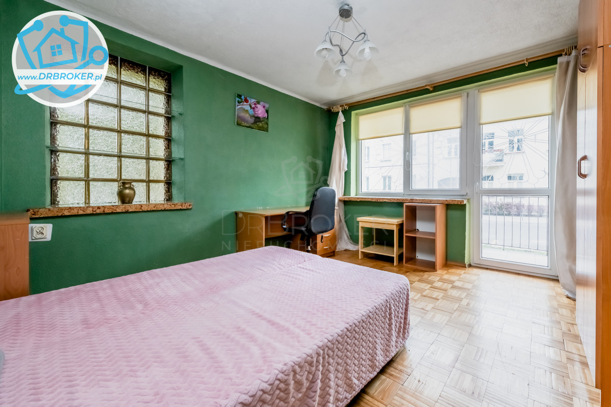 Lokal mieści się na parterze w 4 piętrowym bloku. Składa się z pokoju dziennego, sypialni, kuchni, łazienki (z WC) i przedpokoju. Przynależy do niego balkon i piwnica. Jest gotowy do wejścia, wyposażony w niezbędne meble i sprzęt AGD.