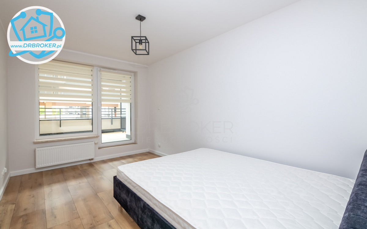 The apartment is located on the 1st floor of a new building from 2022. It consists of a living room with a kitchen annex, 2 bedrooms, a bathroom, and a hallway (with a wardrobe). It comes with a balcony on the west side and a terrace on the east side, a storage unit, and a parking space in the underground garage. Flat is equipped with all household appliances (under warranty), and air-conditioned. In perfect technical and visual condition, with essential infrastructure in the area!